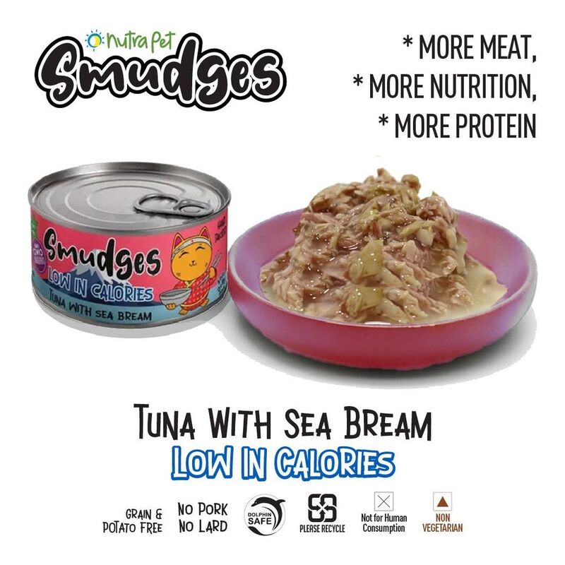 Sumdges Adult Cat food LOW IN CALORIES - Tuna Flakes with Sea Bream in Soft Jelly - 80g Can