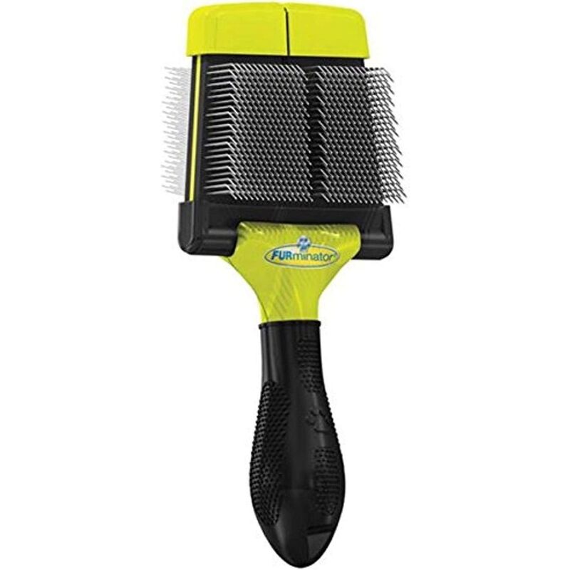 Reaches through topcoat to remove loose undercoat hair