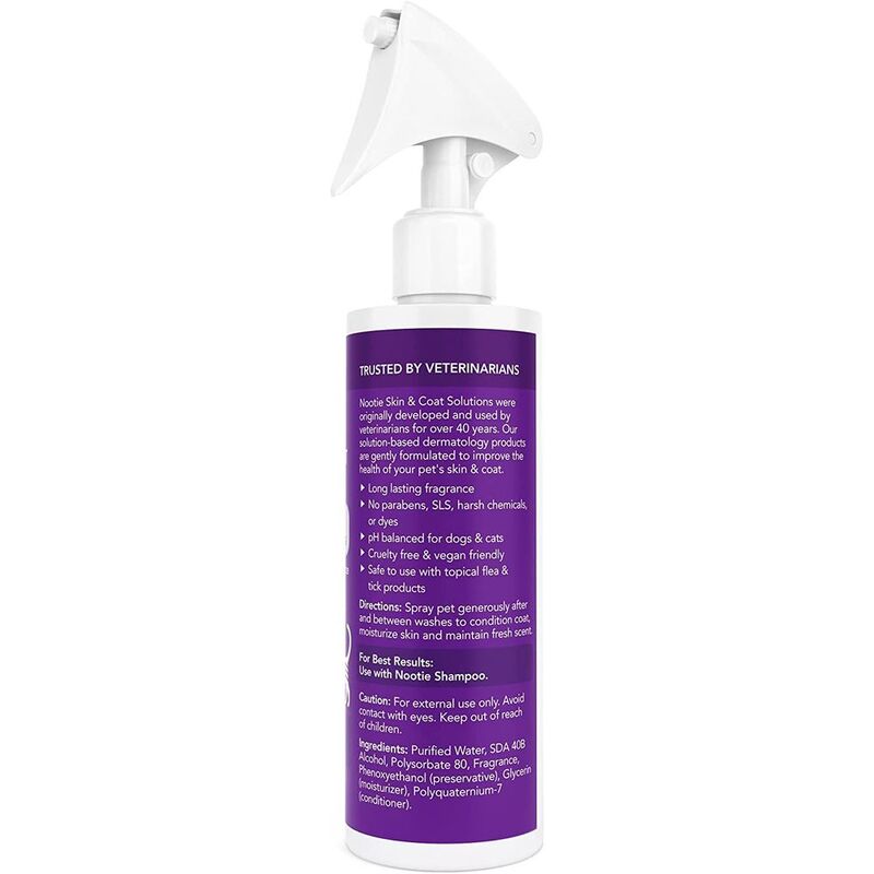 Nootie's Daily Spritz Soft Lilly Passion - The exhilarating aroma of our Soft Lilly Passion fragrance will keep your dog smelling fresh and clean between baths while conditioning the skin and coat. Nootie's Daily Spritz is made with natural ingredients and is soap and paraben free. It's long lasting. and made with a gentle, conditioning formula that contains no sulfates or harsh chemicals.- Long lasting fragrance- Made with natural ingredients- Soap & Paraben Free- No sulfates or harsh chemicals- Safe to use along with topical flea & tick productsIngredientsPurified Water, SDA 40B Alcohol, Nonoxynol 9, Polyquaterinium- 7 (conditioner), Glycerin (moisturizer), Kathon CG (preservative), infused with essence of Soft Lilly Passion