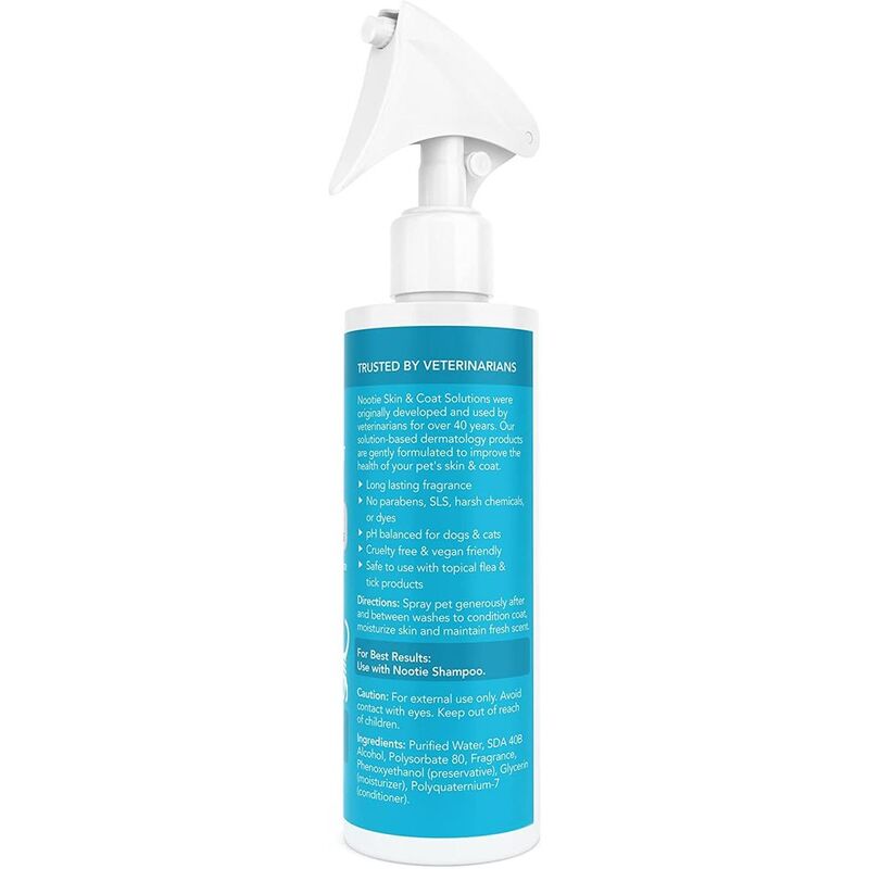 Nootie's Daily Spritz Sweet Pea & Vanilla - The exhilarating aroma of our fragrance will keep your dog smelling fresh and clean between baths while conditioning the skin and coat. Nootie's Daily Spritz is made with natural ingredients and is soap and paraben free. It's long lasting. and made with a gentle, conditioning formula that contains no sulfates or harsh chemicals.- Long lasting fragrance- Made with natural ingredients- Soap & Paraben Free- No sulfates or harsh chemicals- Safe to use along with topical flea & tick productsIngredientsPurified Water, SDA 40B Alcohol, Nonoxynol 9, Polyquaterinium- 7 (conditioner), Glycerin (moisturizer), Kathon CG (preservative), infused with essence of Soft Pea&Vanilla