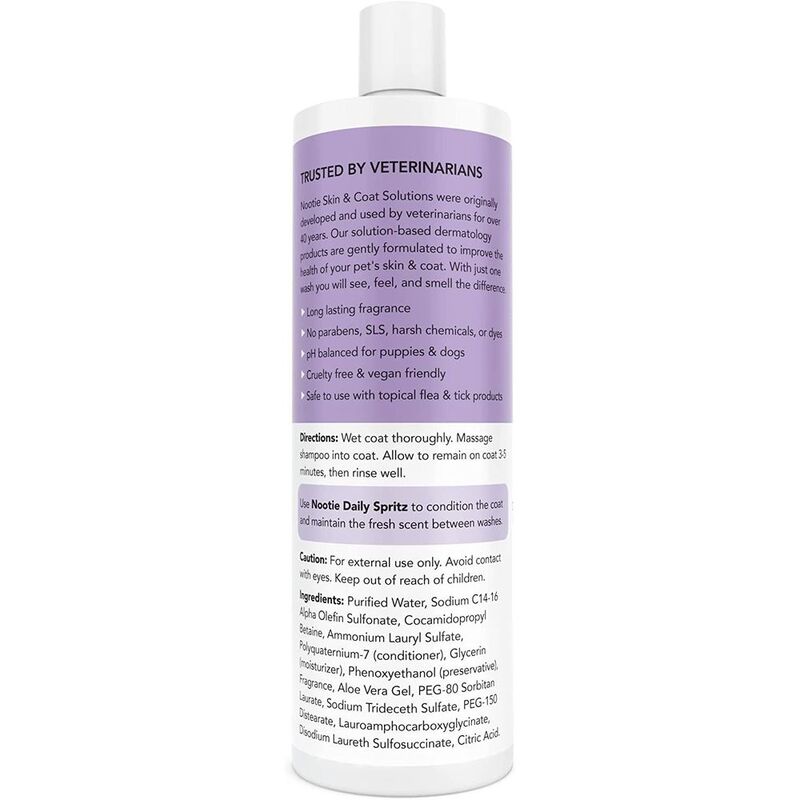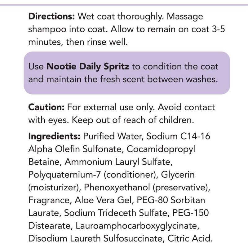 Tearless Nootie Puppy Sweet Dreams Shampoo gently cleanses and leaves coats feeling soft.