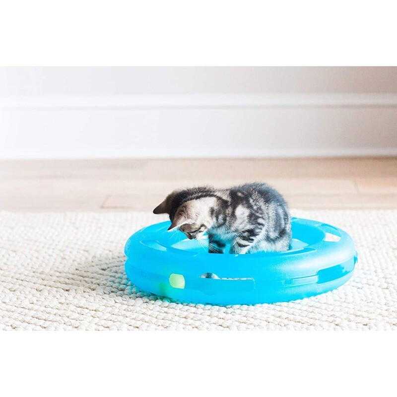 360 degrees of fun that'll bring out the kitten in any cat with the Petmate Crazy Circle. This tubular plastic track holds a ball-and-bell toy for kitty to poke at and chase through paw-sized openings. These fun toys will drive cats crazy as they bat the ball around the circle trying to get it out. Made of durable, long-lasting, easy-to-clean plastic. No batteries required, cat powered. Made in the USA.