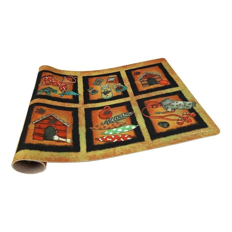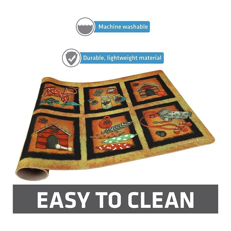 Drymate Dog Bowl Placemat Bow Wow Squares Design - Tan - 12 x 20 inch