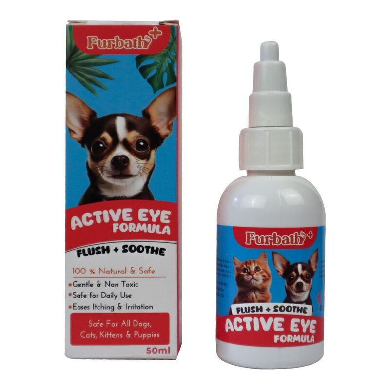 Furbath+ Eye Care with Active Eye Formula for Dogs and Cats - 50ml, a gentle and effective solution crafted to maintain the cleanliness and health of your pet's delicate eyes. Formulated with a blend of carefully selected ingredients, including Disodium EDTA, Zinc Sulfate, Glycerin, Boric Acid, and Propylene Glycol, this eye care solution offers a comprehensive approach to promoting optimal eye hygiene and comfort for your beloved furry companions.