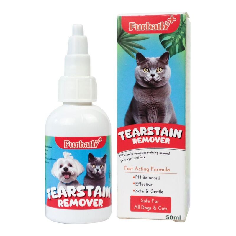 Furbath+ Tear Stain Remover for Dogs and Cats - 50ml, a specialized solution designed to effectively and gently remove tear stains from your pet's fur. Formulated with a unique blend of ingredients including Zinc Sulfate, Ethanol, Lauralkonium Chloride, Boric Acid, and Water, this tear stain remover offers a fast-acting and pH-balanced formula suitable for all cat and dog breeds.