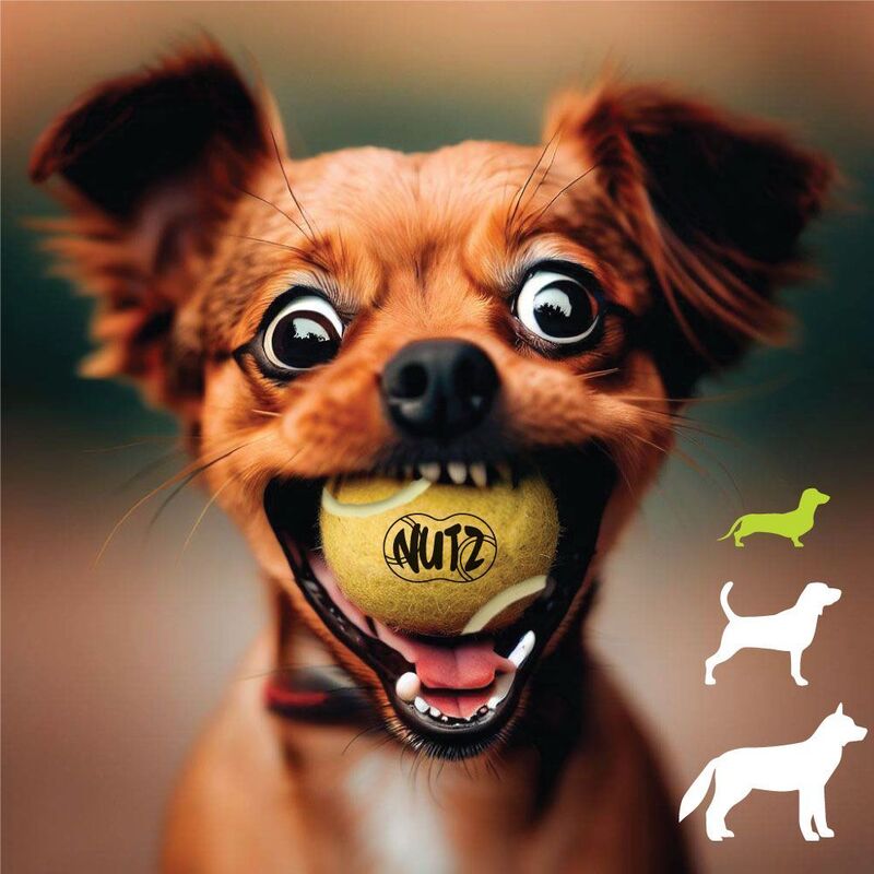 Nutrapet Nutz Tennis Balls Dog Toys - Set Of 3 (2 Non Squeaker & 1 Squeaker) - Small 1.75 In (652341)