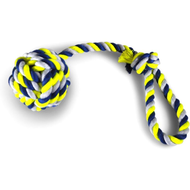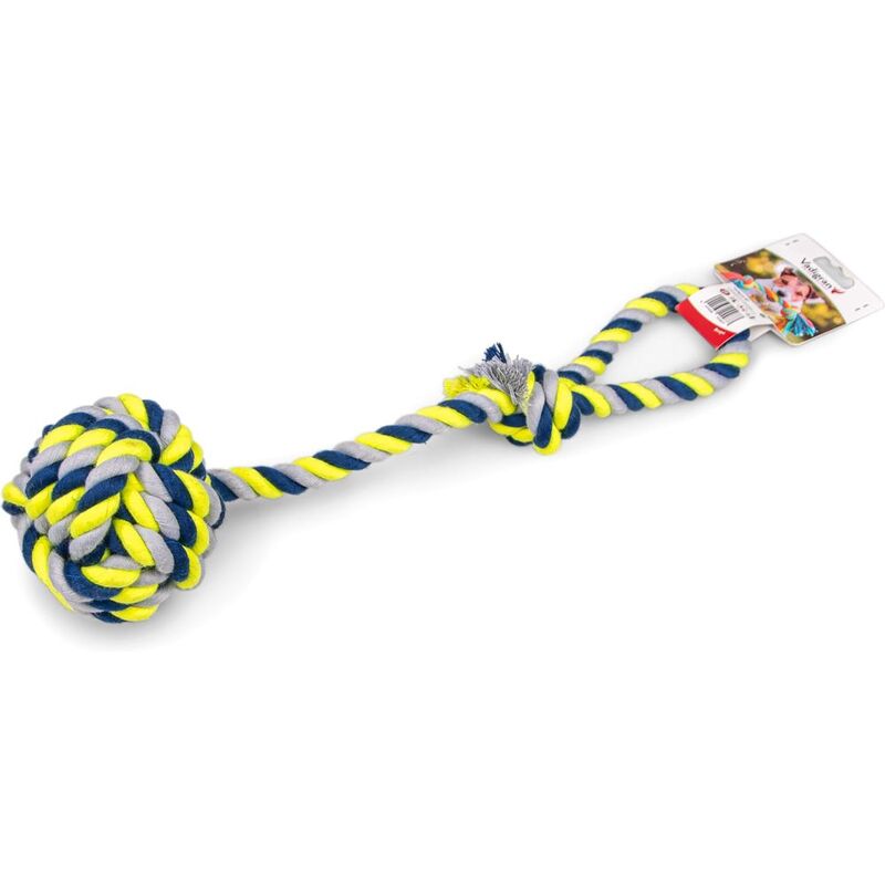 Elevate your dog's playtime experience with this versatile and stimulating toy – the Vadigran Cotton Rope with Handle and Ball in Blue-Yellow – offering fetching, tugging, and chewing fun for your furry friend.