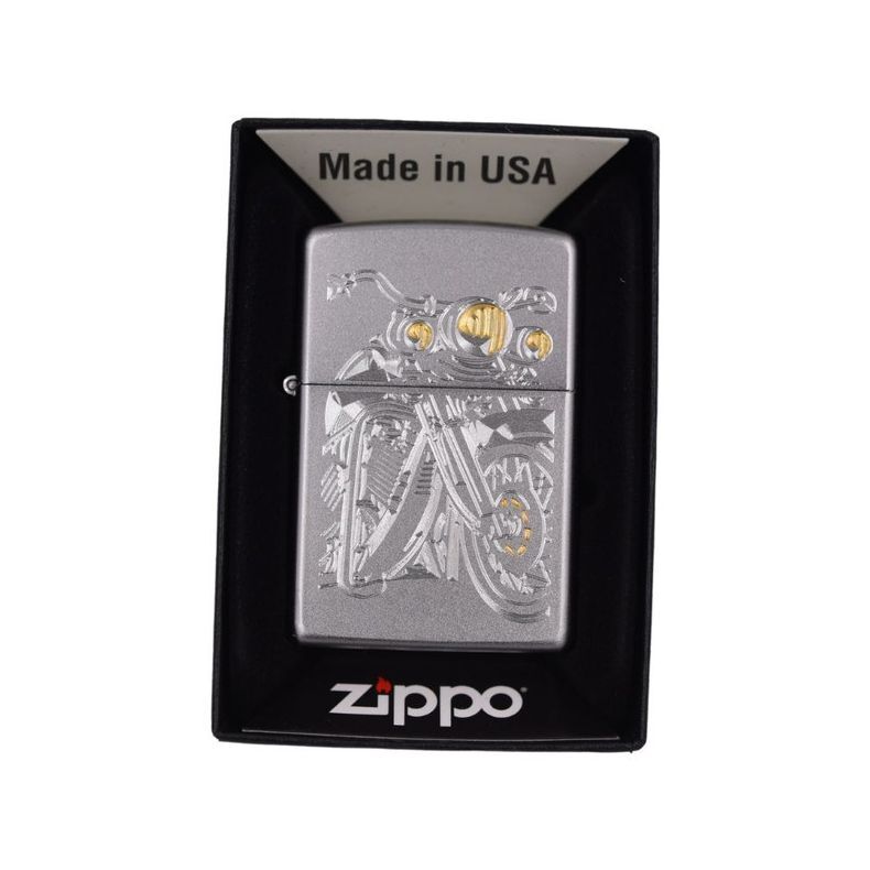 Zippo 205 AE184542 Satin Chrome Motorcycle Windproof Lighter