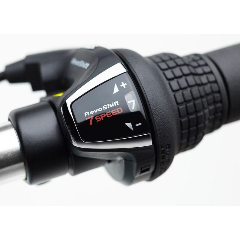 - The Shimano Revo shifter delivers smooth gear shifting, helping to climb hills easily. Brakes control deceleration for swift stopping, while 26-inch Bontrager tires roll smoothly turning the ride into an unforgettable experience