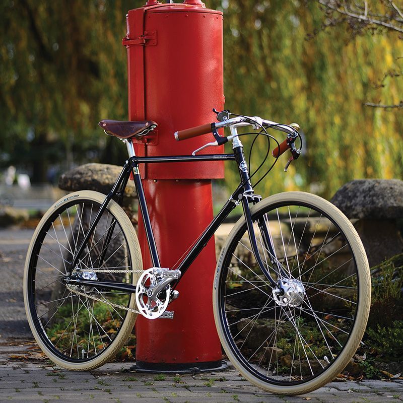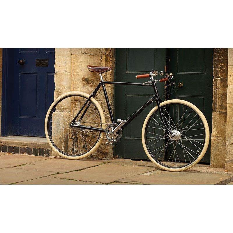 It is not only unique in its ride quality but in its aesthetic, exuding an elegance that hearkens back to the simple beauty of the original design. From the gold lined black alloy Westwood rims to the Brooks B17 leather saddle that has graced the best racing cycles for over 100 years, every aspect of the Guv’nor has been carefully selected to evoke the glory of path racing history. Add to this the benefits of Sturmey Archer hub brakes, enclosed to be reliable in all weathers, and puncture resistant Schwalbe tyres and the Guv’nor becomes the epitome of refined British road cycling with the very best componentry.