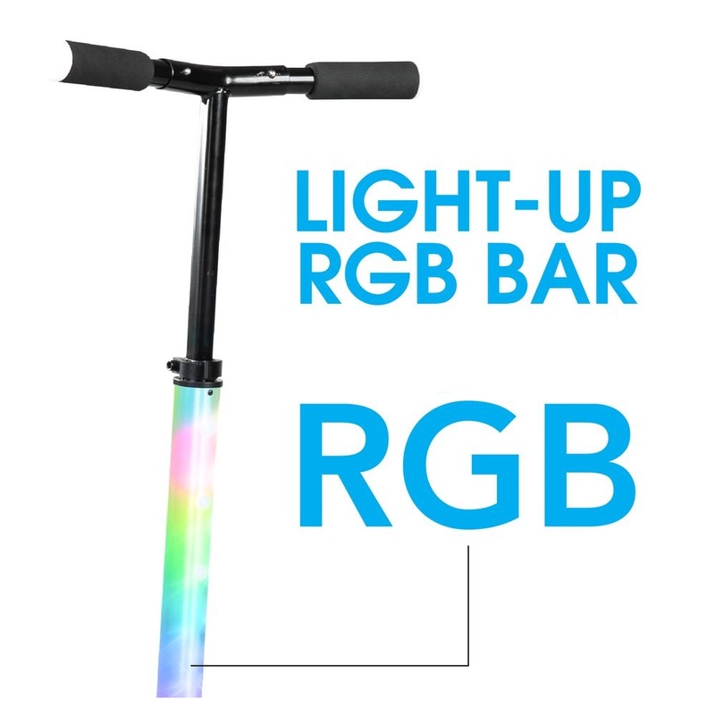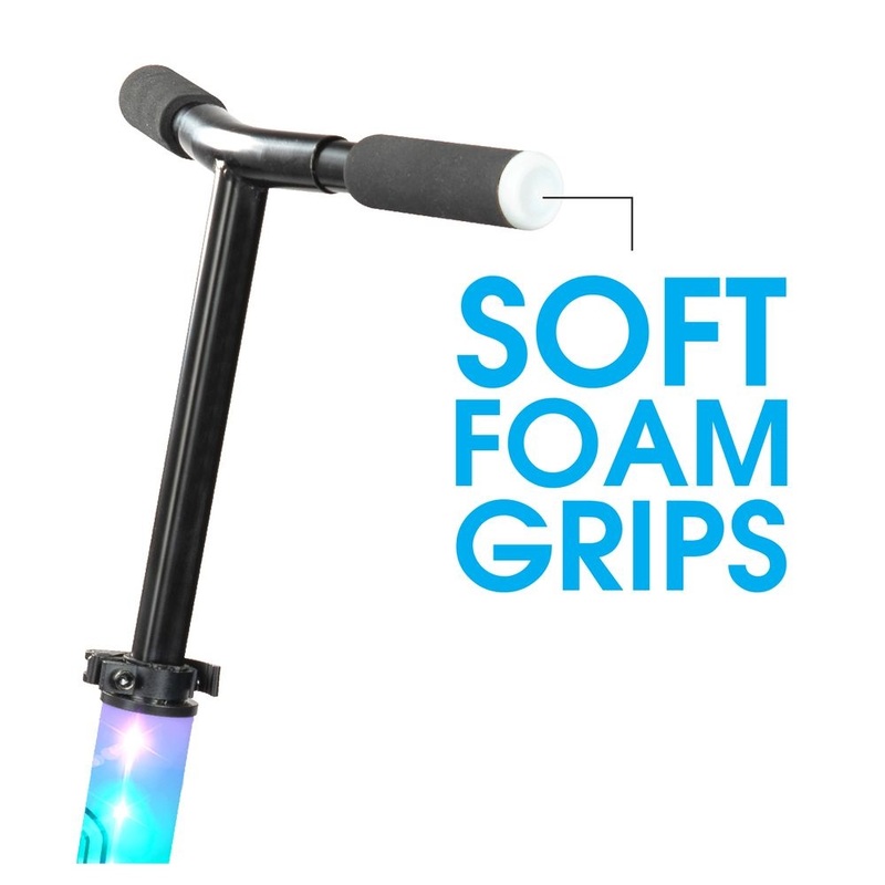 • 3-Stage Height-Adjustable Handlebar with Comfort Foam Grips and Translucent LED Light Tube