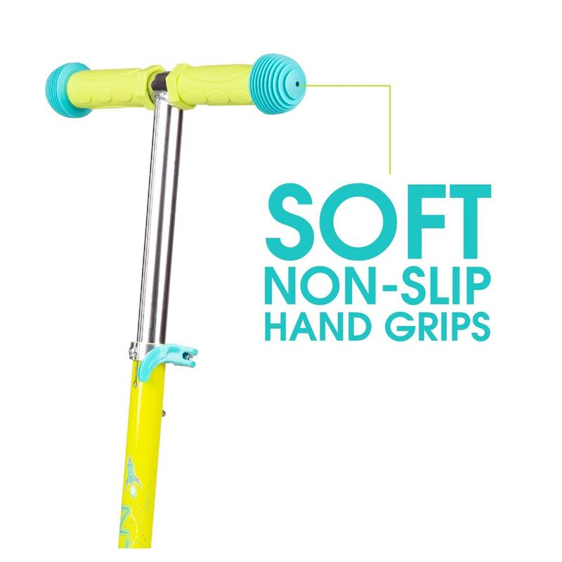 - Soft hand grips for a secure hold from small hands and easy to use quick stop brake