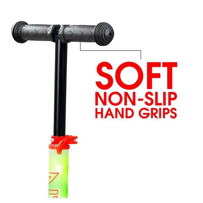 • 3-Stage Height-Adjustable Handlebar with Comfort Foam Grips and Translucent LED Light Tube.