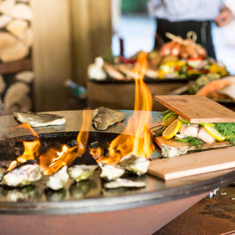 The OFYR can be left outdoors and uncovered in almost all weather conditions. Its three-part modular design makes the OFYR cooking unit rather easy to move around if needed. The OFYR cooking unit is simple to clean and requires virtually no maintenance. Food scraps and excess oil go straight into the fire – all you need to do is wipe the OFYR cooking plate with a damp cloth and it’s ready for the next occasion.