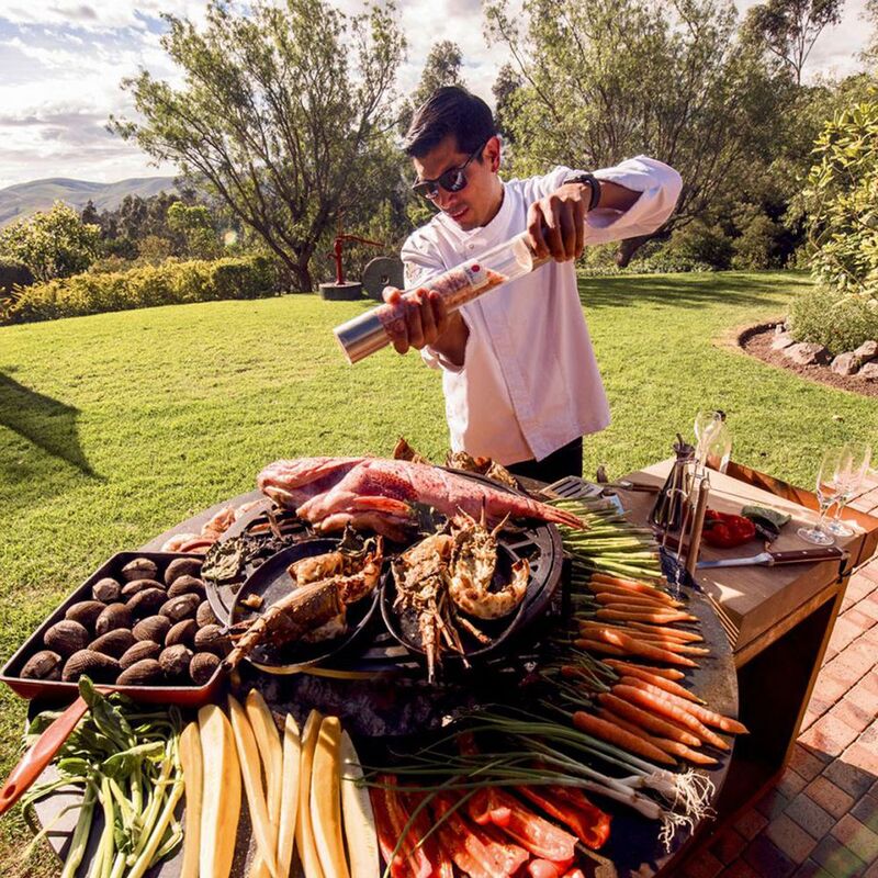 This all-in-one unit combines unbeatable style and functionality in a compact design. The OFYR Island provides everything you need to have an ultimate outdoor cooking experience with friends or family. It includes an 85 cm or 100 cm OFYR cooking unit with wood storage, solid wood chopping board and a handy accessories tray for utensils and condiments. The chopping board is available in teak wood or dark grey ceramic.