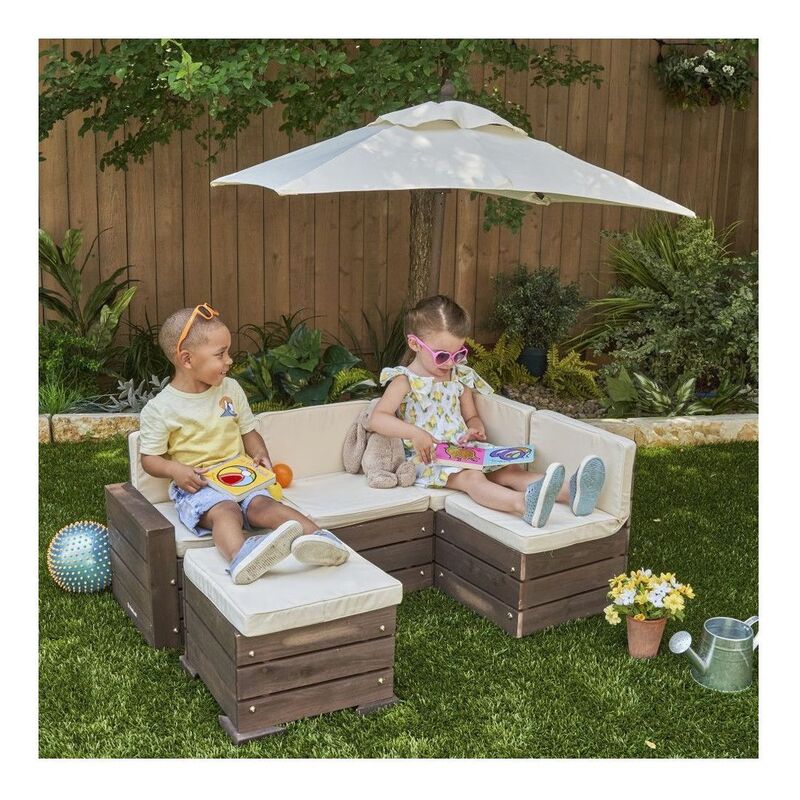 Kidkraft Outdoor Sectional Ottoman & Umbrella Set Bear Brown & Beige