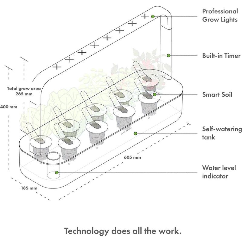 - A Complimentary set of plant capsules: 3x tomato, 3x basil, 3x lettuce
