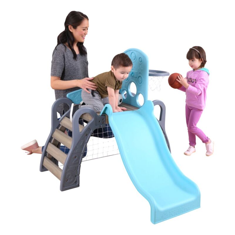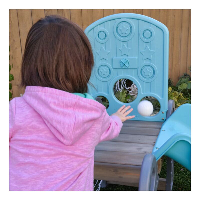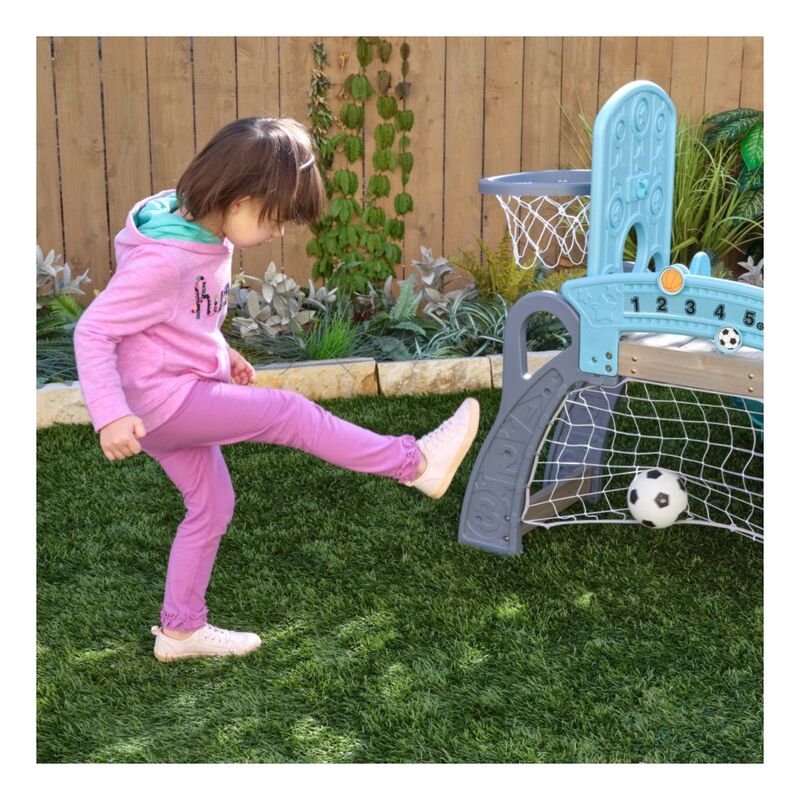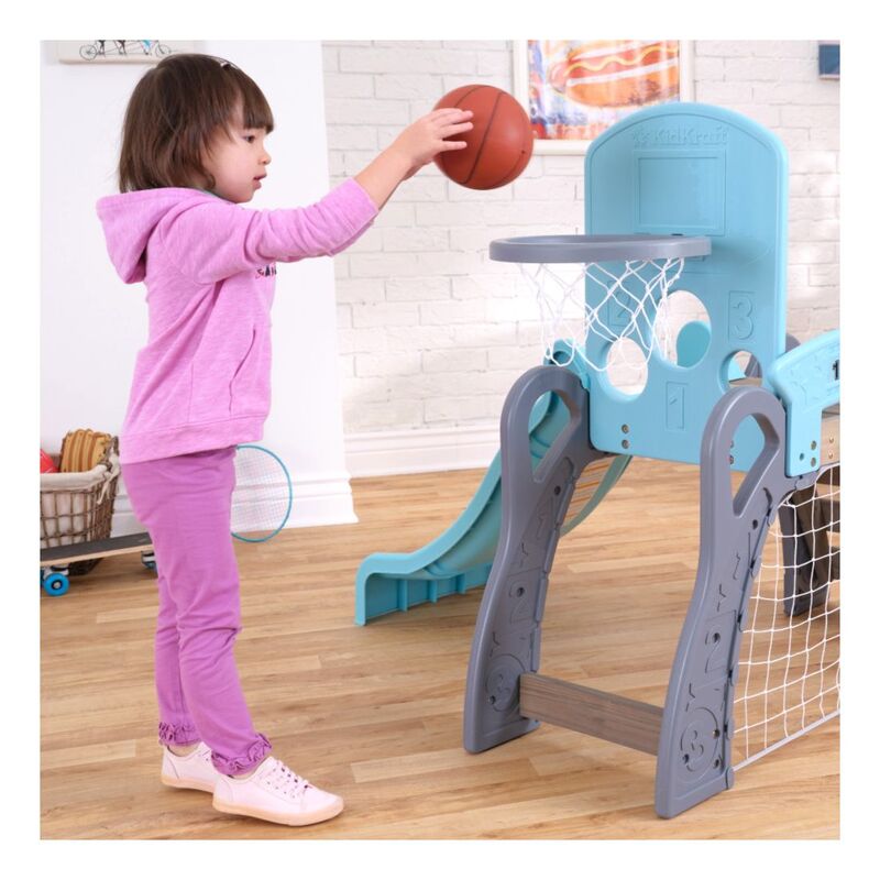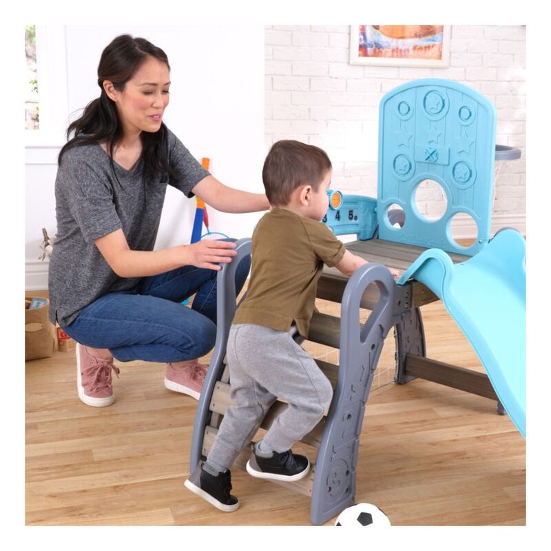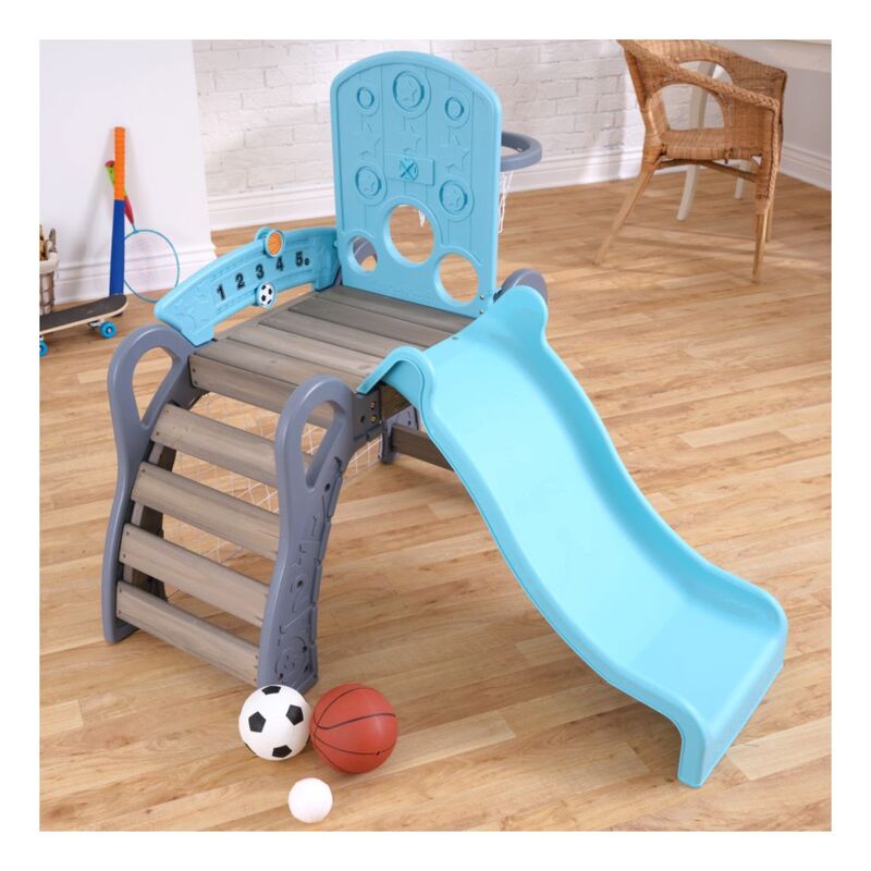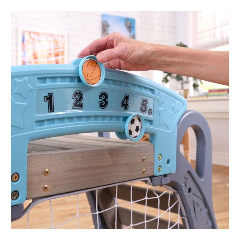 It's game time with the most action-packed climber around. The KidKraft 5-in-1 Sports Climber lets future athletic stars try out different sports in a fun, toddler-sized playset. With a soccer goal, basketball hoop, baseball targets, slide and ladder, there's plenty of action to keep toddlers busy from practice to the pros. Not only will children take aim at their favorite game, they'll also be learning crucial gross motor skills, such as coordination, balance and strength. The 360˚ format allows for multiple kids to play at once. Besides bonding with teammates, kids will also learn independence to go up and down the slide on their own or hang out underneath the deck. Not only does the climber build physical skills, it can also help boost mental thinking as well. Keeping score, strategizing on the next move and counting down the time clock are ways to incorporate a little light learning into the play. Overall, the 5-in-1 Sports Climber from KidKraft is a winner.