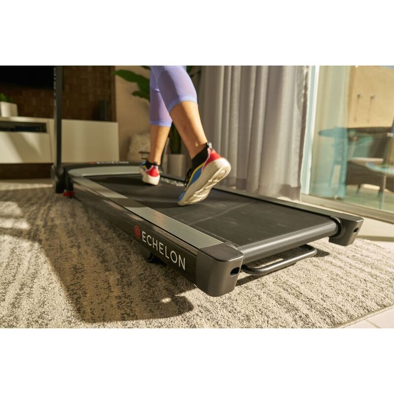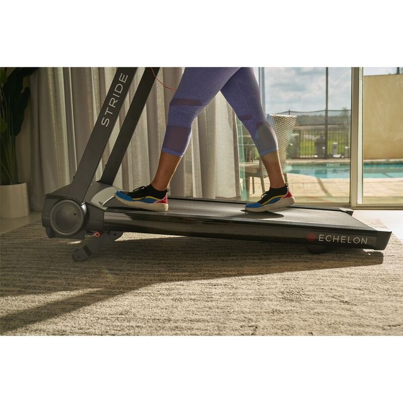Our patented, auto-folding treadmill is designed for easy storage and convenience. When you're not jogging, running, or sprinting toward your fitness goals, activate the auto-fold feature and watch as the Stride folds to just 10" tall. The built-in device holder secures your smart device in place for access to a variety of live and on-demand running classes led by world-class instructors.