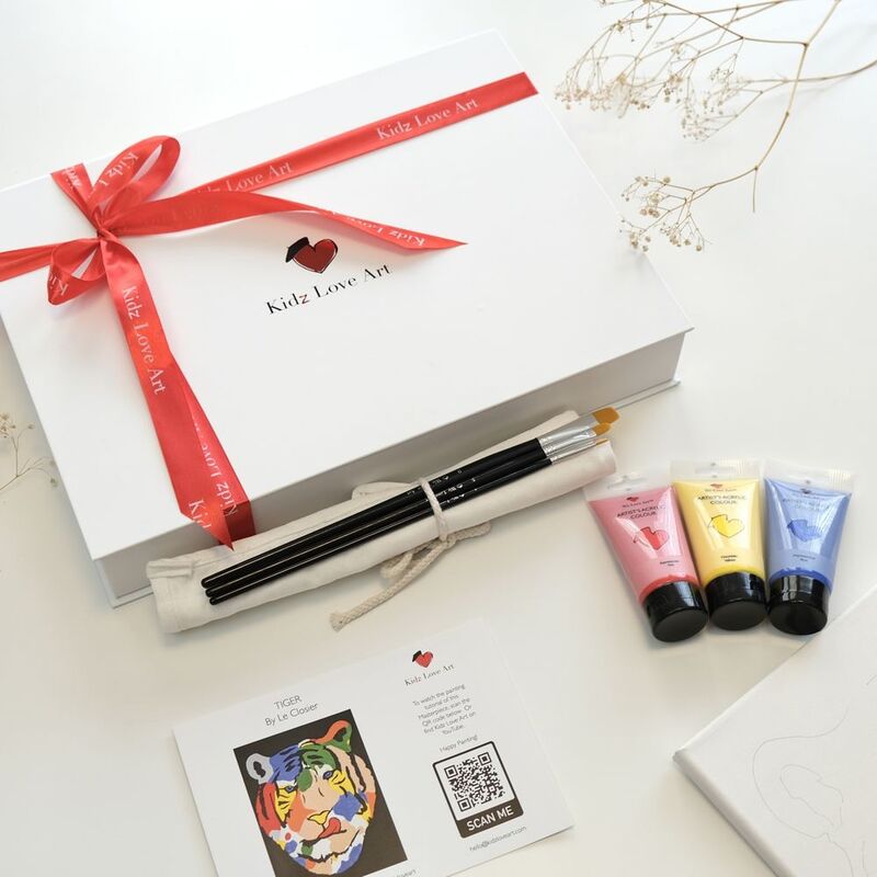 The handcrafted Kidz Love Artbox is a luxury all-in-one kit featuring a 30x40 cm canvas, high-quality materials, and detailed guidance to help your child create a masterpiece. With hand-sketched outlines, kids gain confidence to paint while enjoying the freedom to express themselves.