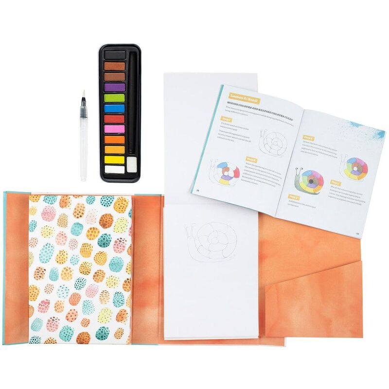 - Each set includes a full colour, 38 page painting guide, 20 watercolour pages, 1 x waterbrush, 12 x rich pigment watercolours (pan), 1 x small sponge for blending effects, 1 x mixing tray (palette)