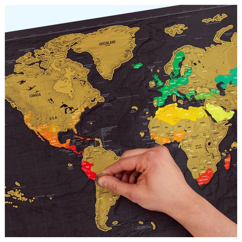 This larger and more elaborate version features geographical and demographical detail, revealing fresh and vibrant colors as you scratch off the places you've visited. this gives you a unique and personalized world map for your wall. You can also scratch away the info graphics at the base of the map to reveal a wealth of incredible facts and invaluable information about this amazing world we all share. Please use an eraser or fingernail to remove the foil, as metal objects will damage the matt finish laminate.