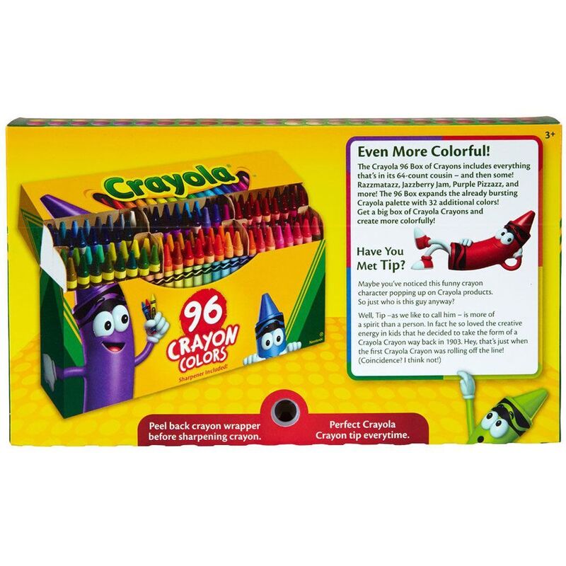 • CRAYOLA CRAYONS: Features 96 Count Crayola Crayons in assorted colors and crayon box with built-in sharpener.