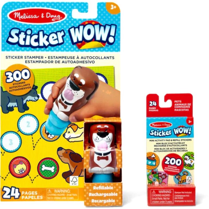 Melissa & Doug Sticker WOW!™ is a whole new way to play with stickers – use the cute, collectible character to stamp pets-themed stickers on the 24-page Dog activity pad, the additional 24-page mini activity pad, and on other creative art projects