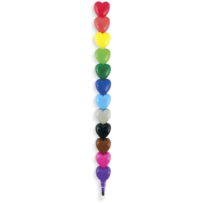 - 12 colored Heart to Heart Crayons that can stack easily for easy packing