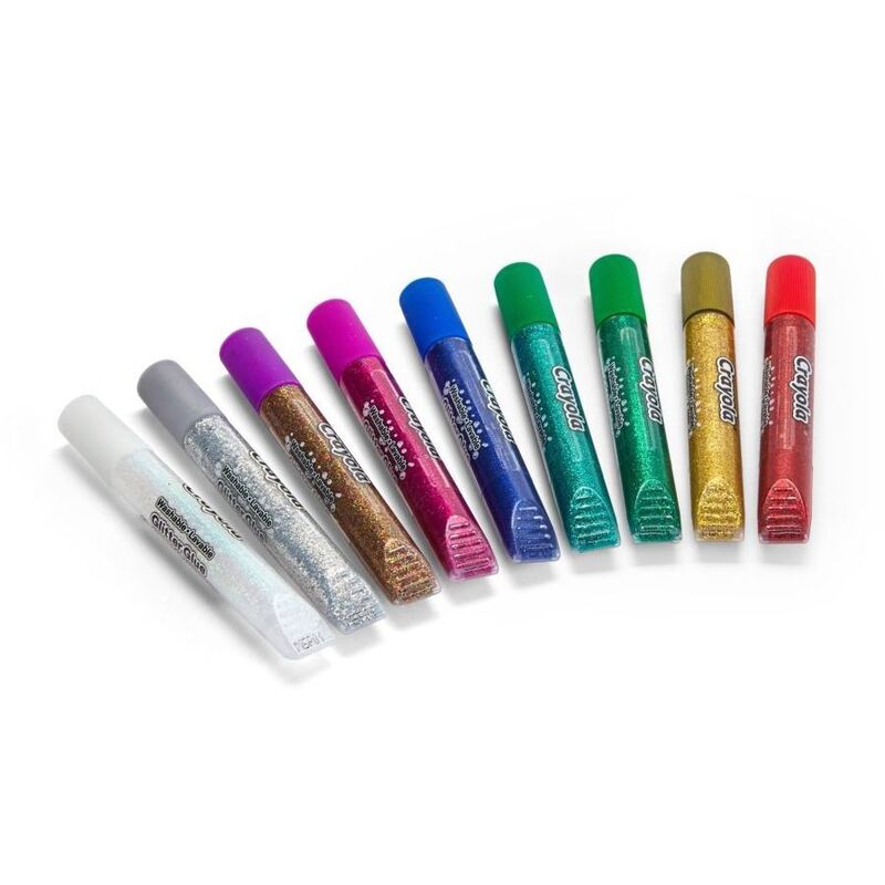 Dazzling, Decorative Glue In A Variety Of Sparkling Colors! Perfect For Crafts, Scrapbooking, School Projects And Much More. Include 9 Washable Assorted Colors.Add Sparkle To Any Project, At Home Or In The Classroom. Crayola Glitter Glue Squeezes Out Easily And Dries In 30 Minutes, So Kids Can Make Their Artwork Shimmer Anytime