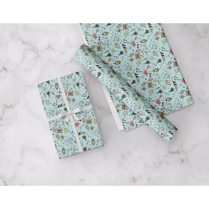 Share The Love Arabic Theme Wrapping Paper Roll - Light Blue - (50 x 70 cm)