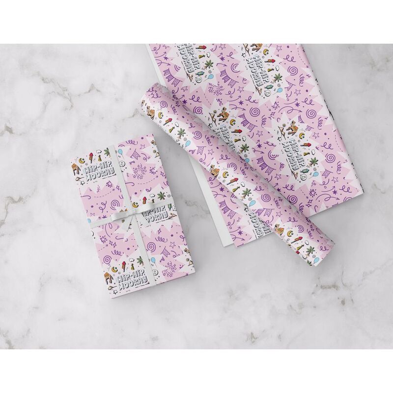 Share The Love Hip Hip Hooray Wrapping Paper Roll - Pink - (50 x 70 cm)