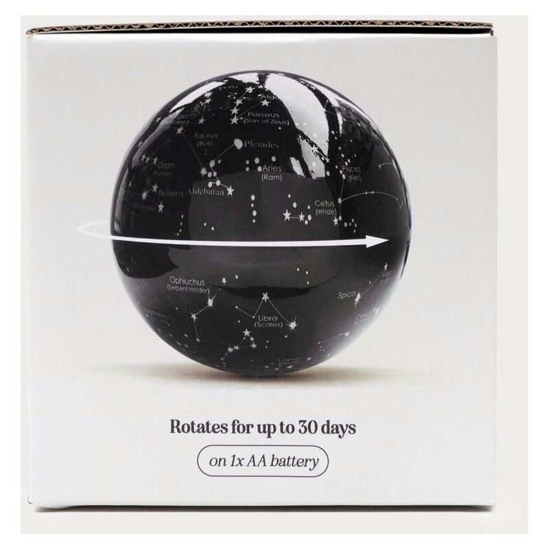 Fancy a trip to the stars, but don’t have the time? Well with our Revolving Night Sky Globe, it only takes 14 seconds! With a 30-day spinning life on just one AA battery, The Revolving Globe is the perfect addition to any desk or shelf, and with it’s easy two-part assembly, you’ll be set up to go in less time than it takes to rotate.