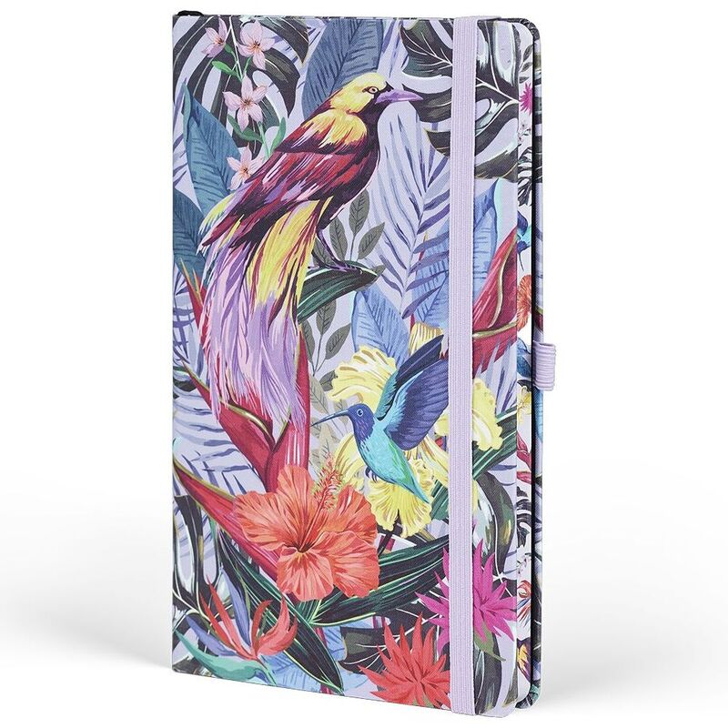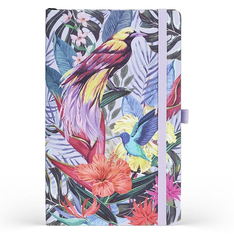 The Eden notebook from Castelli, inspired by nature and paradise, animals of rare beauty feature, hidden within distinctive and colourful foliage.