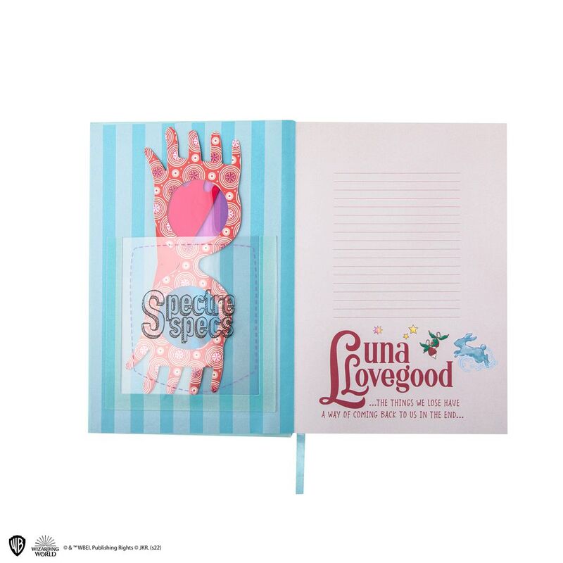 All fans of Luna and the Wizarding World will love this Luna Lovegood hardcover notebook. A very special collectible to add to your stationery collection. Representing The Quibbler Magazine, it comes with a pair of Spectrespecs and the illustrations inside are in an animated flip book style for extra magic ! This notebook will also allow you to write down all your creative ideas in its lined pages.