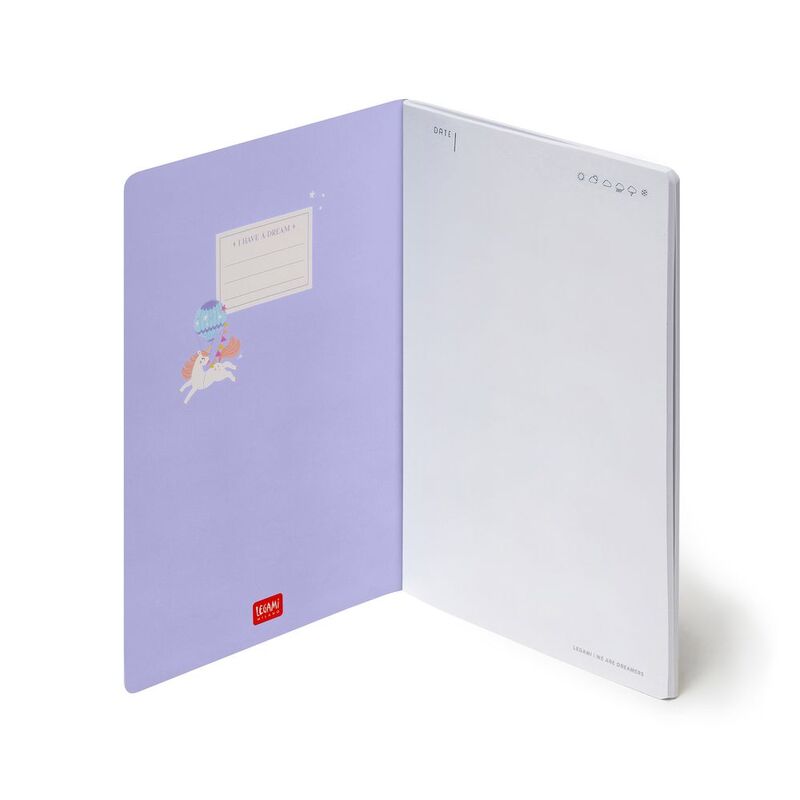 Feel happy with the Legami Unicorn Notebook with plain pages - Medium. The A5 format is the perfect way to set your creativity free at home, school or the office.
