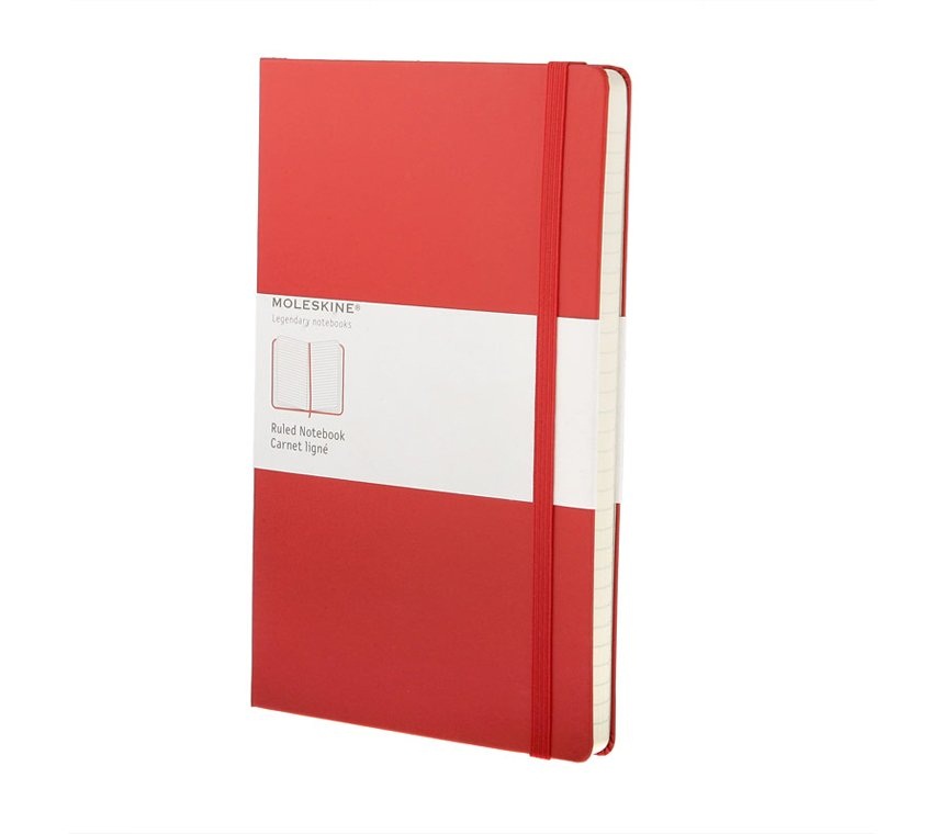 دفتر كبير الحجم مسطَّر باللون الأحمر وغلاف مقوى من موليسكن