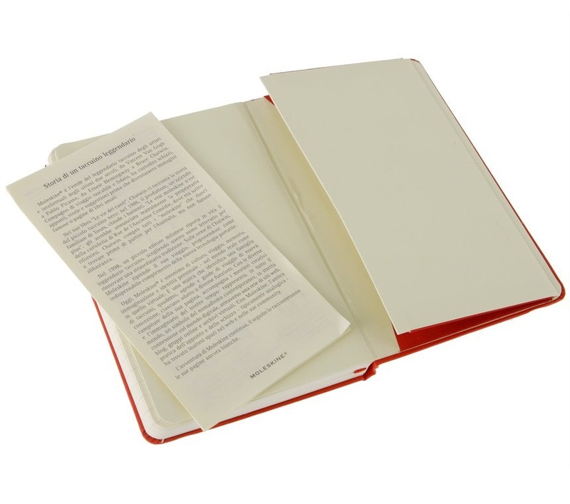 إن هذا الإصدار الأحمر من دفتر الجيب البسيط الكلاسيكيّ من موليسكن هو رفيق أنيق للسفر، فهو مثاليّ للكتابة وتدوين الأفكار والملاحظات. ويتمتع الدفتر، مثل نظيره الأسود الأفضل مبيعًا، بغلاف من الورق المقوى بزوايا مستديرة، وورق خالٍ من الأحماض، وعلامة للصفحات، ورباط إغلاق مطاطيّ، وجيب داخليّ قابل للاتساع، يحتوي على تاريخ موليسكن.