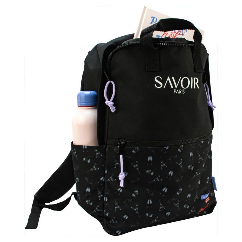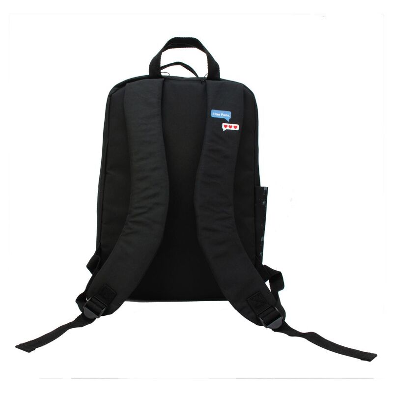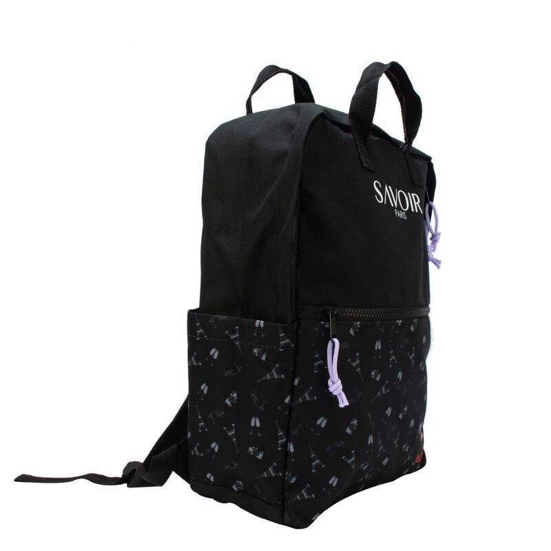 Foam reinforced Nylon Body panels with contrast teal panels. Multi striped scarf Zip puller details with printed shoulder straps, side panels and front pocket panels. Trend driven shape with carry handles.