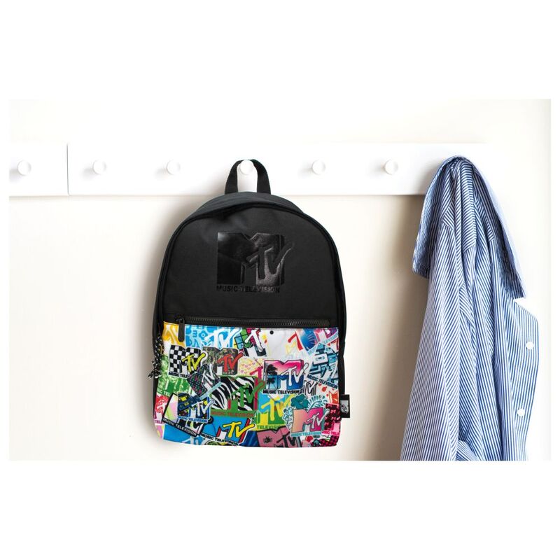 Foam reinforced Nylon Body panels with contrast pattern panels. Multi striped lace Zip puller details with printed shoulder straps, side panels and front pocket panels. Trend driven shape with carry handles.