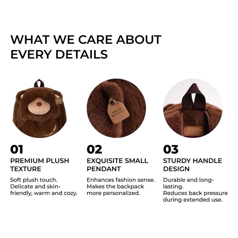 Designed for little explorers, this plush animal backpack blends comfort, warmth, and playful style. With its ultra-soft, breathable material and thoughtful design, it offers both practicality and charm, making every adventure more delightful for children.