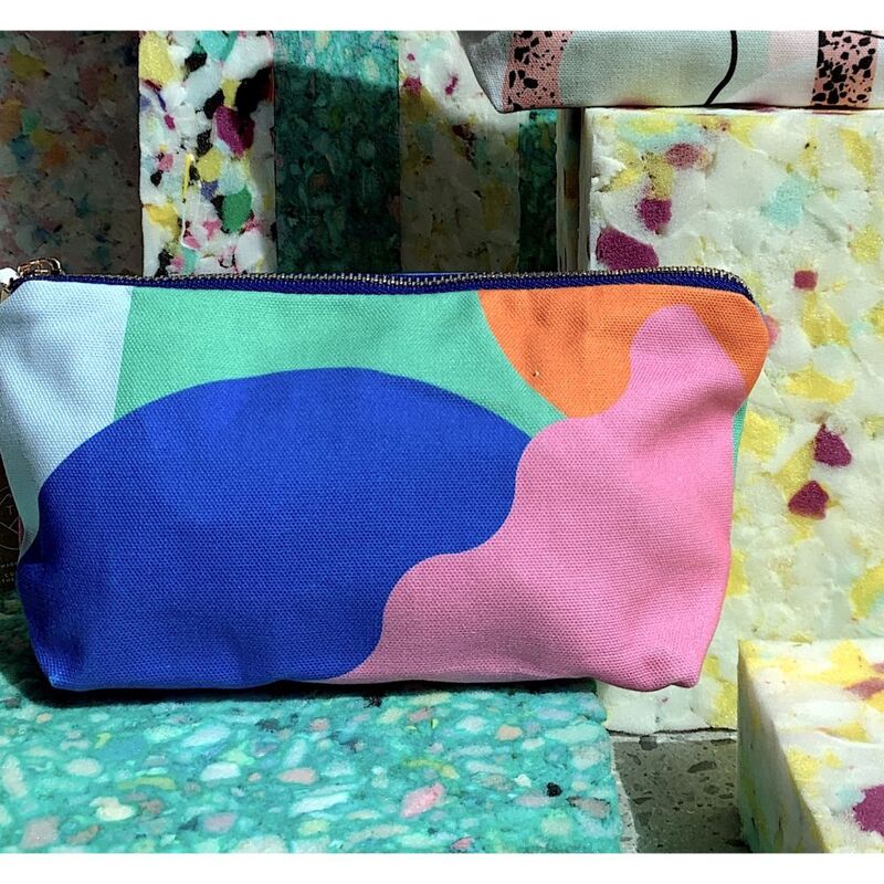 Pencil case or cosmetic pouch? You decide! This is perfect for either, it's made lovely cotton canvas fabric and has nylon lining. Features a Memphis[1]inspired print and a contrast color brass metal zip. Machine-washable.