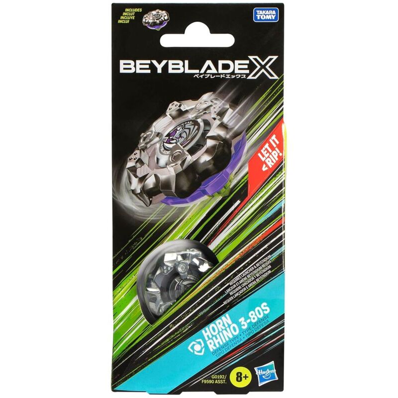 Introducing the Horn Rhino 3-80S, the ultimate BEYBLADE X Defense-Type top designed for Bladers who want to enhance their defensive gameplay! With its robust build and strategic design, this top is engineered to absorb impacts and outlast opponents, making it a must-have in your collection!