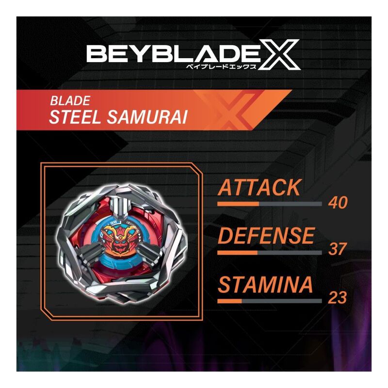 - Innovative X-Celerator Gear System: Engage the rail for an Xtreme Dash boost, propelling your Steel Samurai around the Beystadium for devastating crashes and bursts!