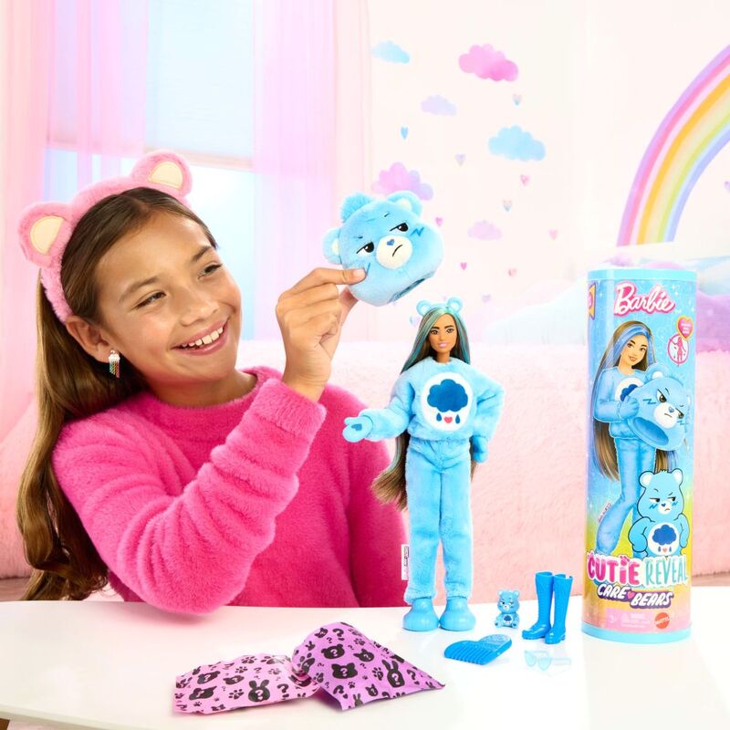 - With 10 surprises in 1 package, Barbie Cutie Reveal Care Bears dolls deliver the cutest unboxing experience with plush friends, fashions and transforming fun!