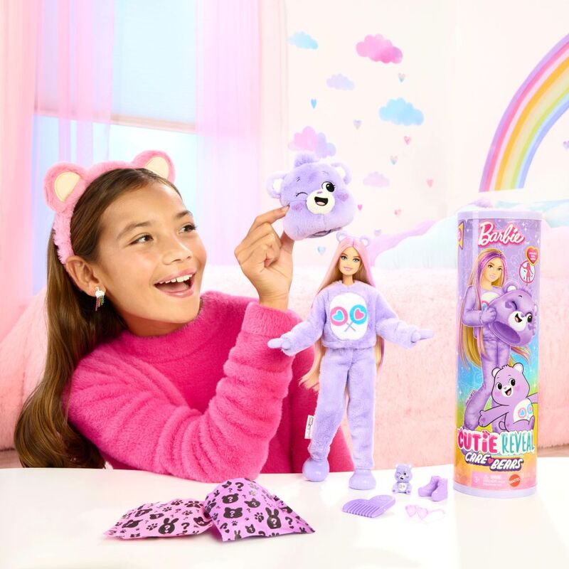 • With 10 surprises in 1 package, Barbie Cutie Reveal Care Bears dolls deliver the cutest unboxing experience with plush friends, fashions and transforming fun!