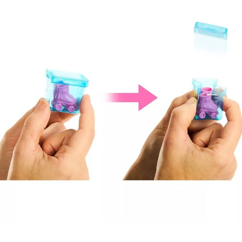 - Continue to unbox and find a small, scented doll with colorful hair, 2 mystery bags and an ice cube that really 'pops' open to reveal a pair of roller skates use the cube for storage or repeat reveals!