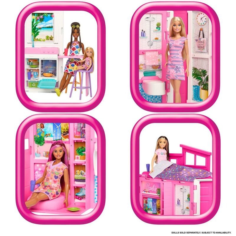 Kids can imagine so many sweet stories with this Barbie doll and her Getaway House! It comes with 4 play areas and 11 accessories for endless hours of fun.