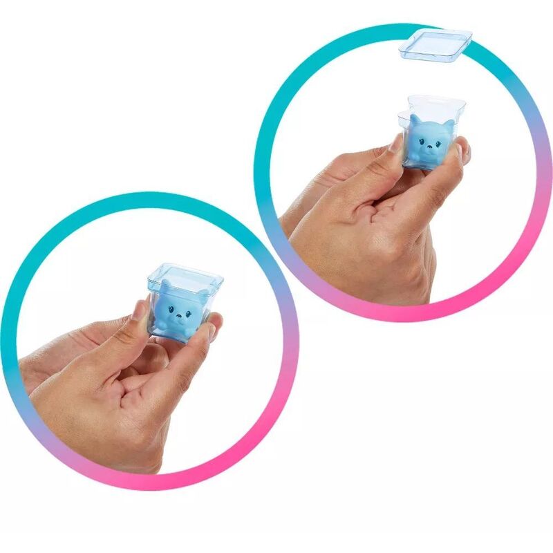 • Find the 2 ice cubes that each pop open to reveal another surprise inside -- a colorful skirt and a cute pair of shoes. Use the ice cubes for storage or repeat reveals!