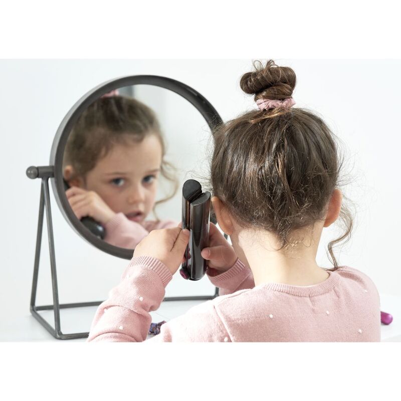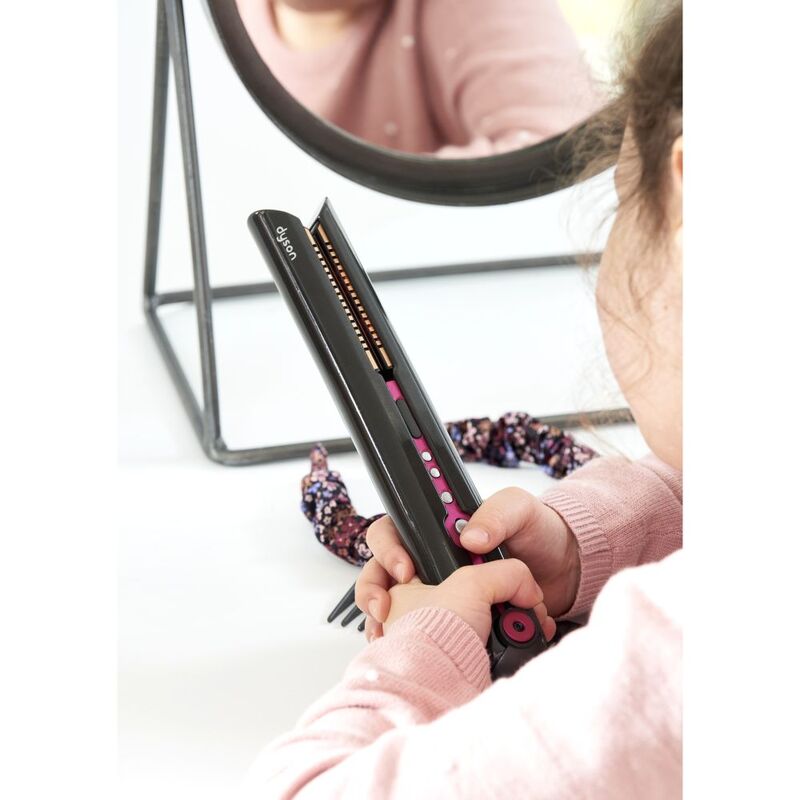 The toy straighteners in this set are made to look like dyson’s famous corrale straighteners they feature the exact same sleek design and even come with realistic lights and sounds! your little one will have an absolute blast getting ready for a big night out or styling the hair of every doll in sight. just like the real thing!